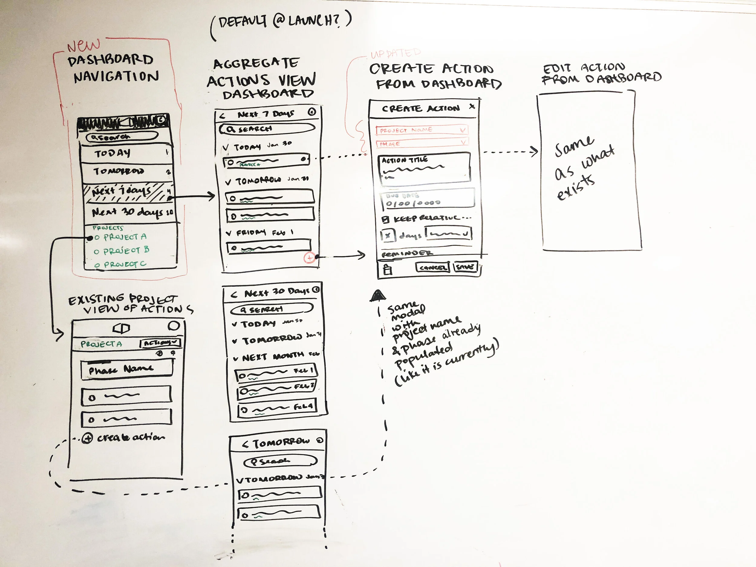 When I joined Pro.com the design team had already launched a relatively robust tool to be used during the planning phase of a home improvement project. However, there was not yet a single tool or process for Project Managers (the person who manages the home improvement project) to use while out in the field. Even though projects were being completed and finished beautifully, the business and operations teams needed more visibility into the status of projects during construction. Project Managers (PMs) also needed something to help them manage their projects and store information in a centralized place. As the company had eventual plans of scaling to more cities, there needed to be a more robust process and tool that would work at scale.